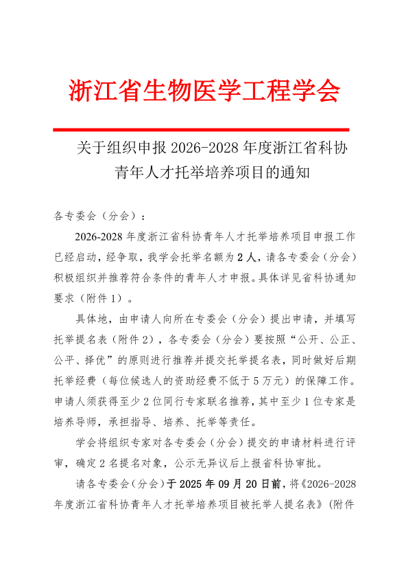关于组织申报 2026-2028 年度浙江省科协 青年人才托举培养项目的通知