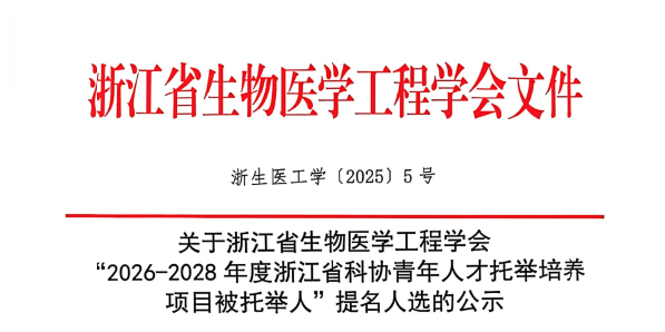 关于浙江省生物医学工程学会 “2026-2028年度浙江省科协青年人才托举培养项目被托举人”提名人选的公示